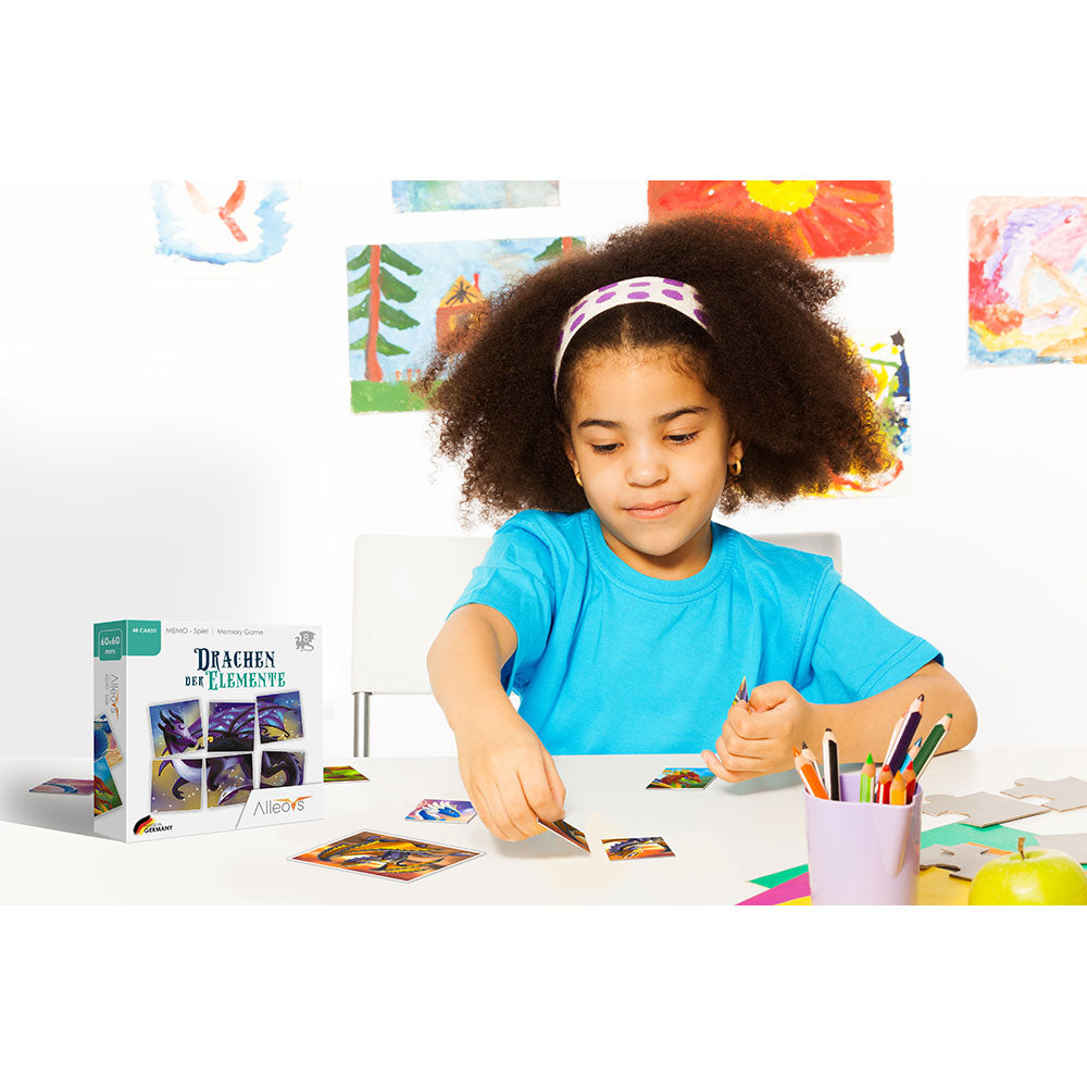 Wer kann die magischen Drachen bändigen? Das Memo-Spiel bietet Spielspass für Kinder ab 5 Jahren und geht ganz einfach: Verteile die Karten verdeckt auf dem Tisch und finde die passenden Paare! Wem das als erstes gelingt, erhält das gesamte Bild des Drachen und gewinnt das Spiel!