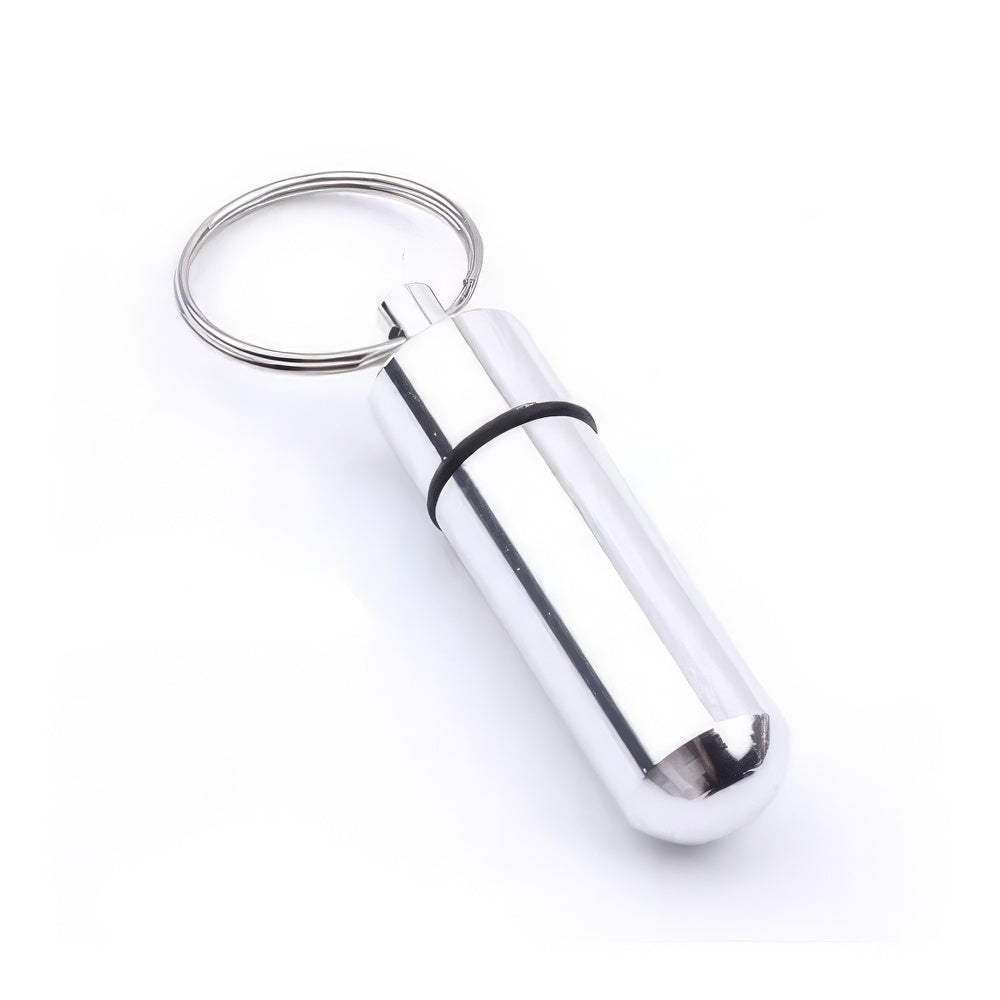 Unsere kompakte und stilvolle Tablettenbox aus hochwertigem Aluminium ist die ideale Lösung, um Ihre Medikamente, Vitamine oder Nahrungsergänzungsmittel sicher und griffbereit aufzubewahren. Dank des robusten Materials bleibt der Inhalt vor Feuchtigkeit und äußeren Einflüssen geschützt. Durchmesser ca. 1.3 cm, Länge ca. 3 cm, Gesamtlänge ca. 5 cm.