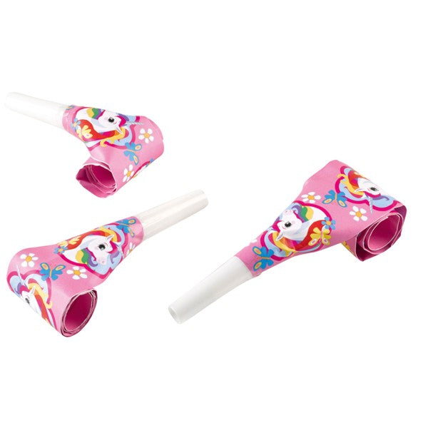8 Luftrüssel Einhorn 30cm. Beim Pusten in diese Luftrüssel entfalten die Einhorn Motive. Ein tolles Partymotiv speziell für Einhorn Fans.