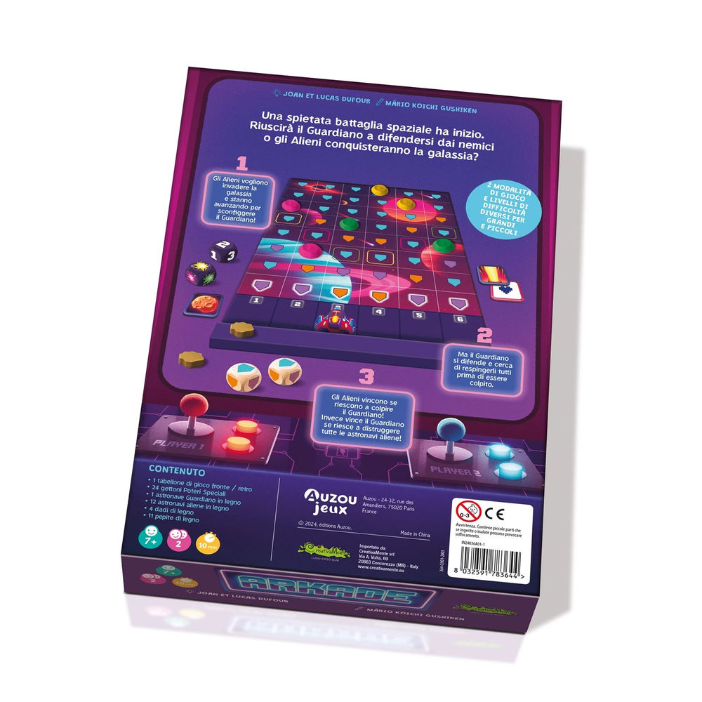 Una spietata battaglia spaziale ha inizio. Riuscirà il Guardiano a difendersi dai nemici o gli Alieni conquisteranno la galassia? Gli Alieni vogliono invadere la galassia e stanno avanzando per sconfiggere il Guardiano! Ma il Guardiano si difende e cerca di respingerli tutti prima di essere colpito. Arkade ha 2 modalità di gioco e livelli di difficoltà diversi per grandi e piccoli. È una fantastica sfida per due giocatori che riprende lo stile dei più famosi videogiochi arcade da cabinato.