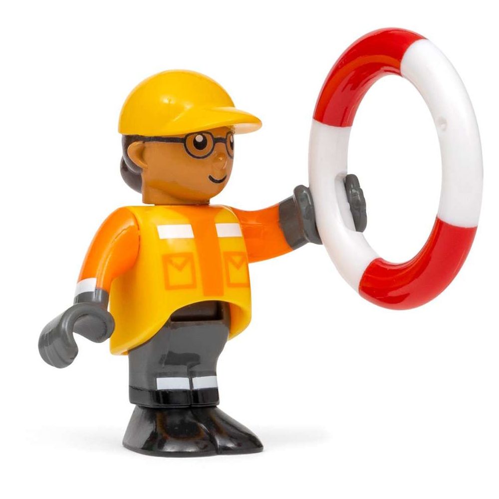 Mit dem voll beweglichen Holz-Containerkran im BRIO Bahn Verlade-Terminal werden Güter in Windeseile vom LKW oder dem Schiff auf die Eisenbahn umgeladen. Inklusive Spielfigur und zwei magnetischen Holz-Containern.