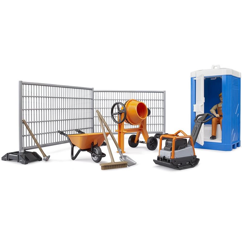 Das neue bworld Baustellenset dient als Anlaufpunkt für eine Vielzahl von Fahrzeugen aus den riesigen Themenwelten von Bau- und Nutzfahrzeugen von BRUDER. Denn mit diesem Themenset können kleine Bauarbeiter verschiedenste Baustellenszenen realistisch nachspielen. Bauzäune sichern den Baustellenbereich ab. Zum Lieferumfang gehören ebenfalls eine Rüttelplatte und eine Mörtel Mischmaschine für die anfallenden Bauarbeiten. Natürlich ist für die persönlichen Bedürfnisse des Bauarbeiters auch eine mobile Toilette enthalten. Besonders gut passt das bworld Baustellenset als Erweiterung für den MB Sprinter Kommunal (Art.-Nr. 310.02677), den Cat Minibagger (Art.-Nr. 310.02466), oder den JCB MIDI Baggerlader (Art.-Nr. 310.02427).