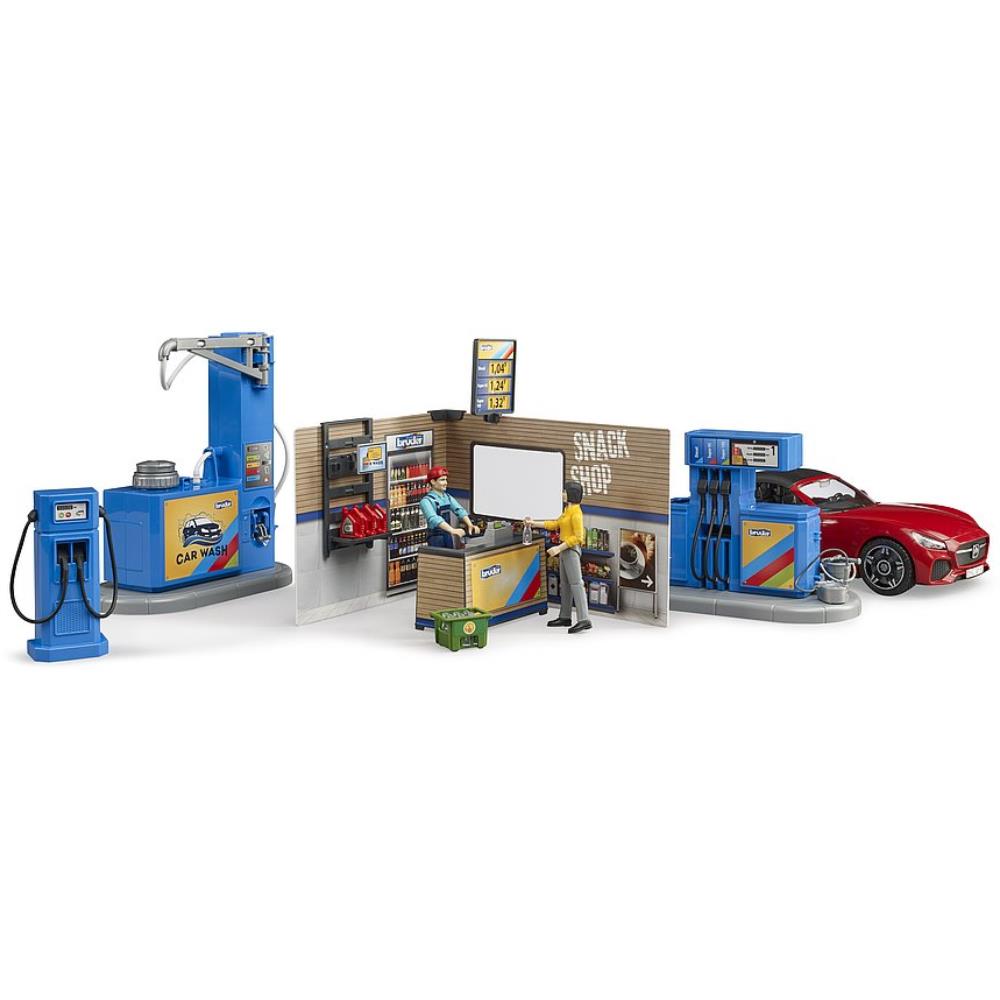 Bruder bworld Tankstelle mit Fahrzeug & Waschplatz