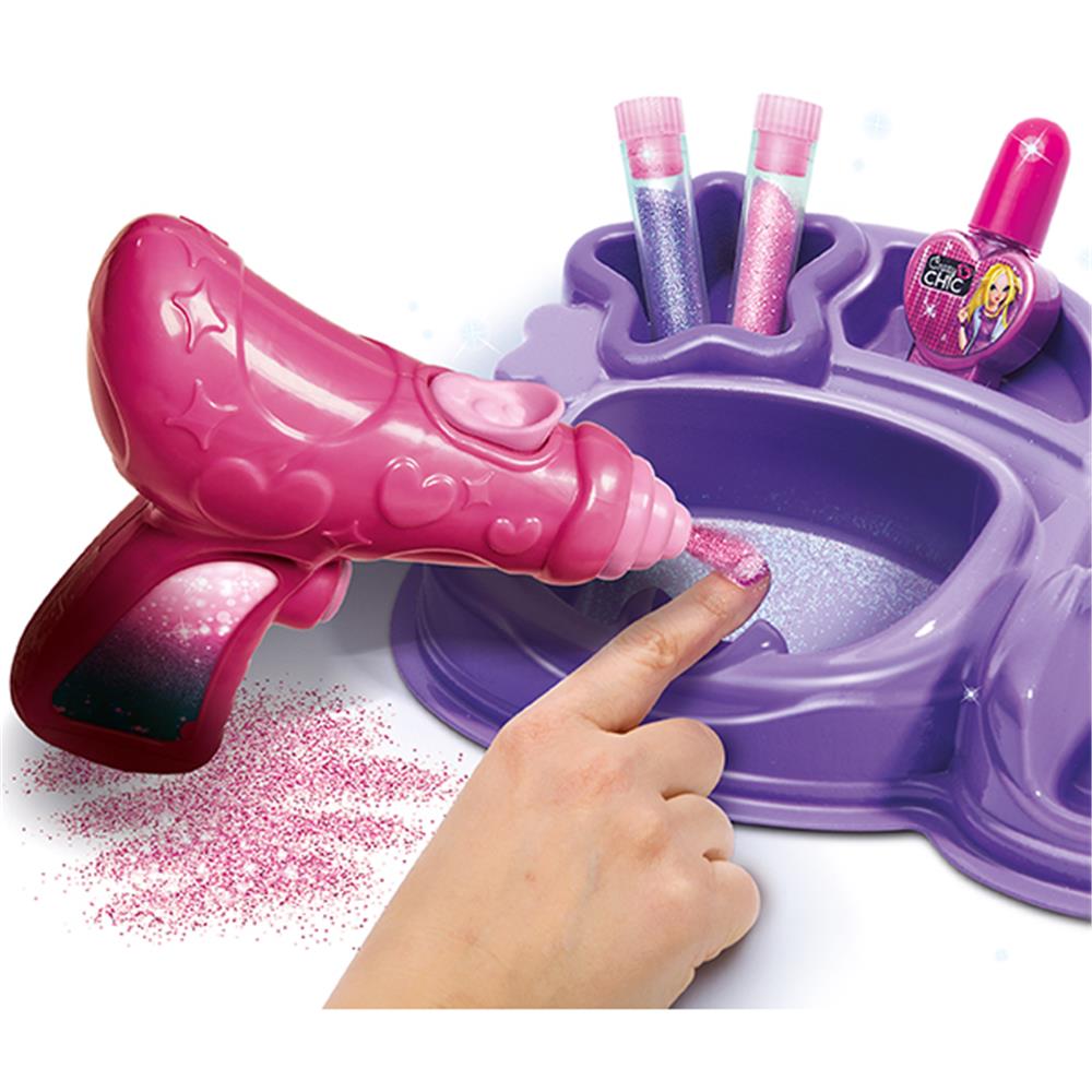 Ein modernes Set für angehende Nailart Profis, mit einer Nagellack-Maschine, Glitzer und einem Nagellacktrockner. Das Set enthält zusätzlich die neueste Kollektion von Crazy Chic Nagellacken, einen praktischen Dekorationsstift, viele Schablonen und ultra-glamouröses Glitzer. Ein cooles und originelles kreatives Spiel für die Dekoration von Nägeln in echtem Crazy Chic Style.