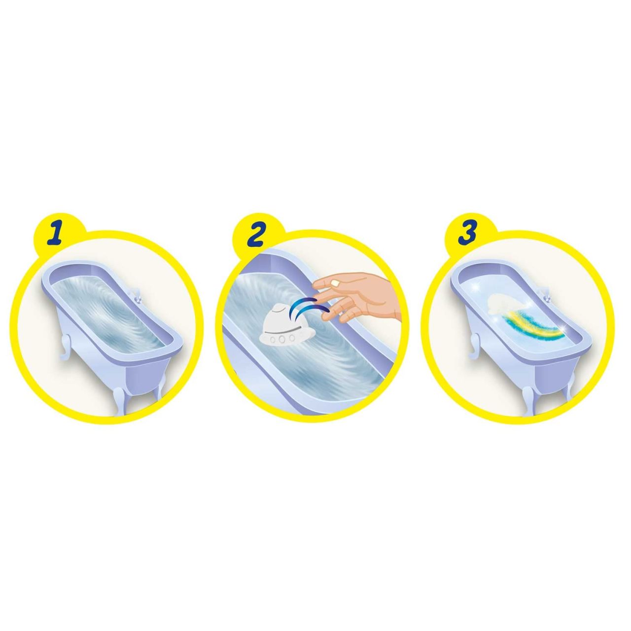 Die Regenbogen-Badebombe schwimmt auf dem Wasser und verwandelt es mit einem einsetzenden Regenbogenschweif aus Schaum zu einem wunderschönen Regenbogen-Schaumbad und erfrischender Erdbeerduft.