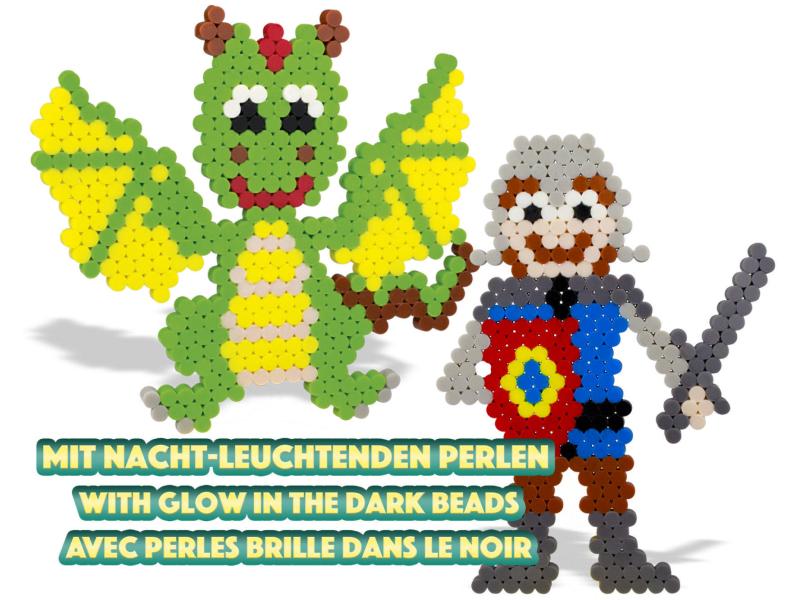 Die Perlen haften durch einfaches Wasserauftragen, kein Bügeln nötig. 1x Board, 1x Schablonen, Splash Beadys in versch. Farben, 1x Wassersprüher, 1x Anleitung mit Motiven