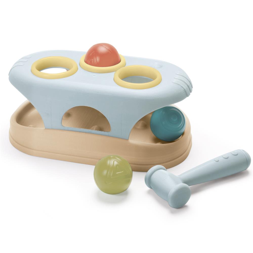 Das Hammerbrett ist ein Biokunststoff-Spielzeug von dantoy und wird in Dänemark aus Zuckerrohr hergestellt. Dadurch ist das Produkt zu 100 % recycelbar und besteht aus 100 % nachwachsenden Rohstoffen.