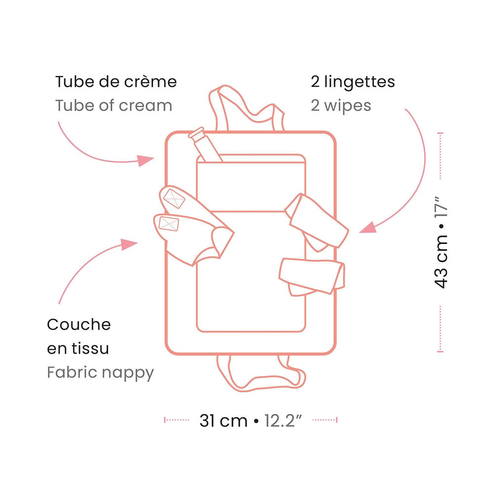 Eine transportable Wickeltasche, auf der man seine Puppe wickeln kann. Nach dem Öffnen verwandelt sie sich in eine bequeme Decke, auf die die Puppen gelegt werden können. Mit der Windel, den Feuchttüchern und der Tube Creme sind die Puppen rundum versorgt. Ein unverzichtbares Accessoire, das man überallhin mitnehmen kann!