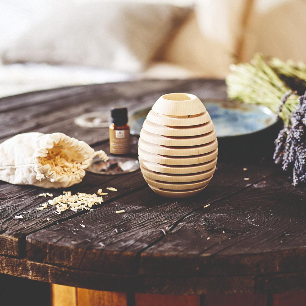 Legen Sie die beigefügten Späne der Arve in das Duftholz und geben Sie 5 - 10 Tropfen des ätherischen Öls hinzu.