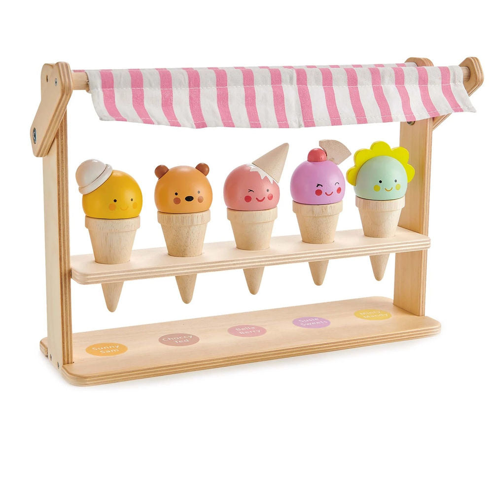 5 farbige Eistüten…mmmh, soooo lecker! In diesem kleinen Laden ist jedes Kind gerne Eisverkäufer/In. Produktgröße: 33x12x26cm.