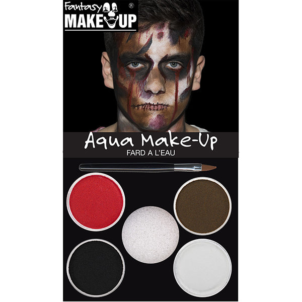 Schminkset Zombi, mit 4 Farben, Pinsel und Schwamm