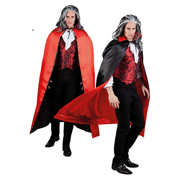 Dieser Umhang für Erwachsene in rot/schwarz kann auf zwei Seiten getragen werden. Material 100% Polyester, Handwäsche