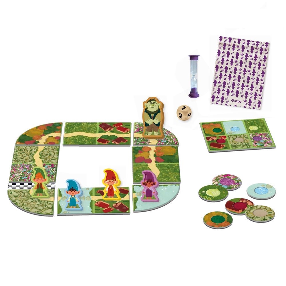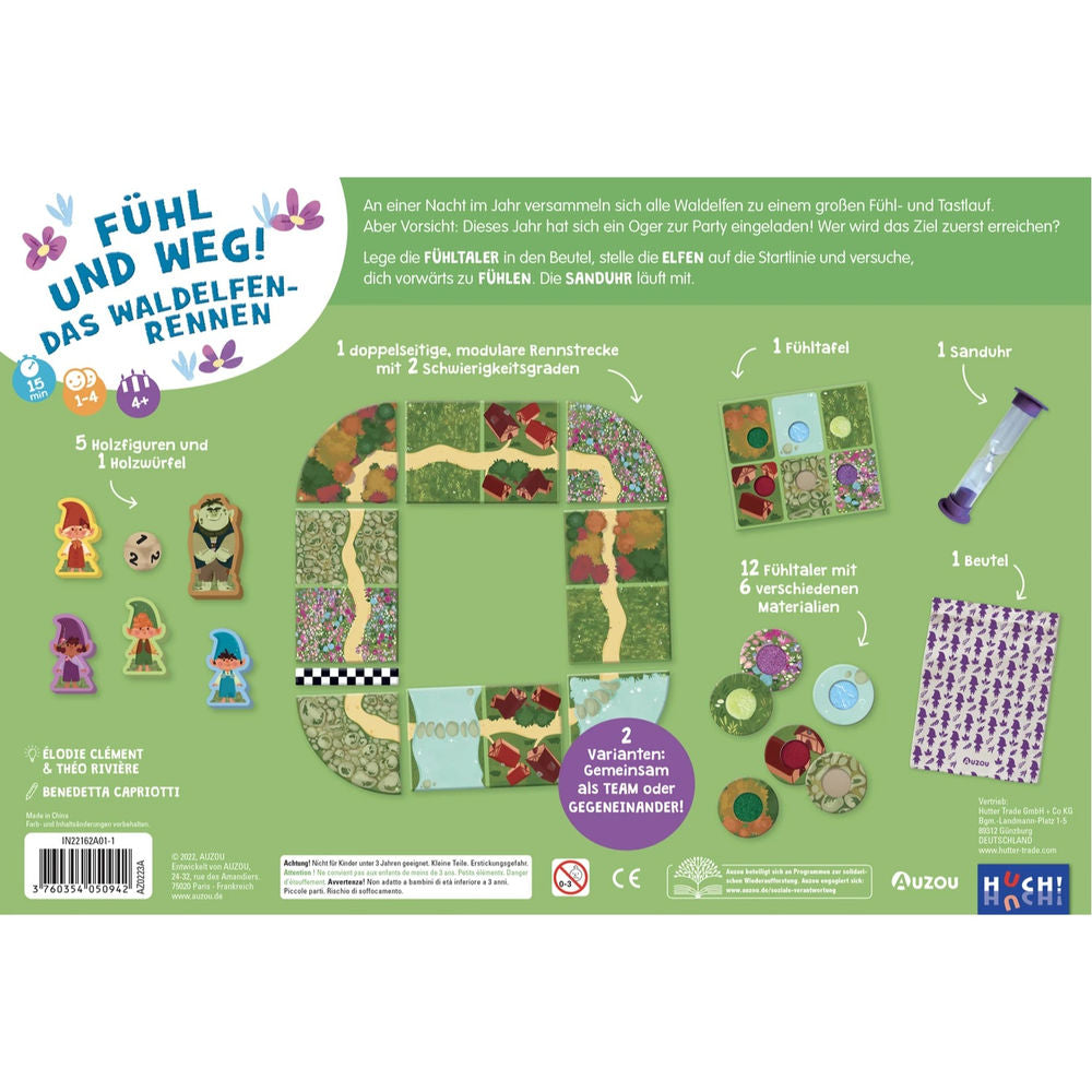 Auzou. An einer Nacht im Jahr versammeln sich alle Waldelfen zu einem grossen Tastlauf. Aber Vorsicht: Dieses Jahr hat sich ein Oger zur Party eingeladen! Wer wird der Schnellste sein? Lege die Fühlplättchen in den Beutel und die Waldelfen an die Startlinie und versuche dann beim Tasten das Plättchen zu finden, das dem Ort vor deiner Spielfigur entspricht, um voranzukommen.
