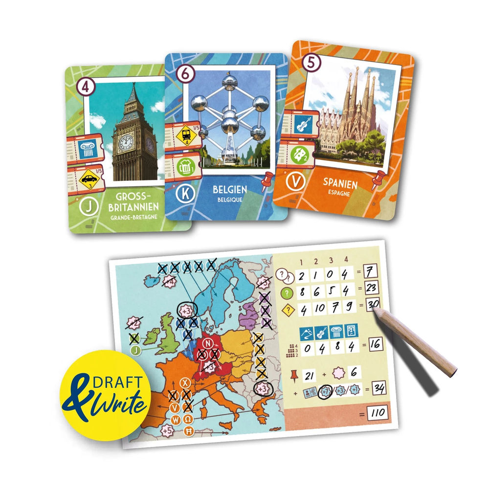 Reist durch Europa und erhaltet Punkte für besuchte Länder, Regionen, Kultur und Natur, die lokale Küche und Verkehrsmittel.