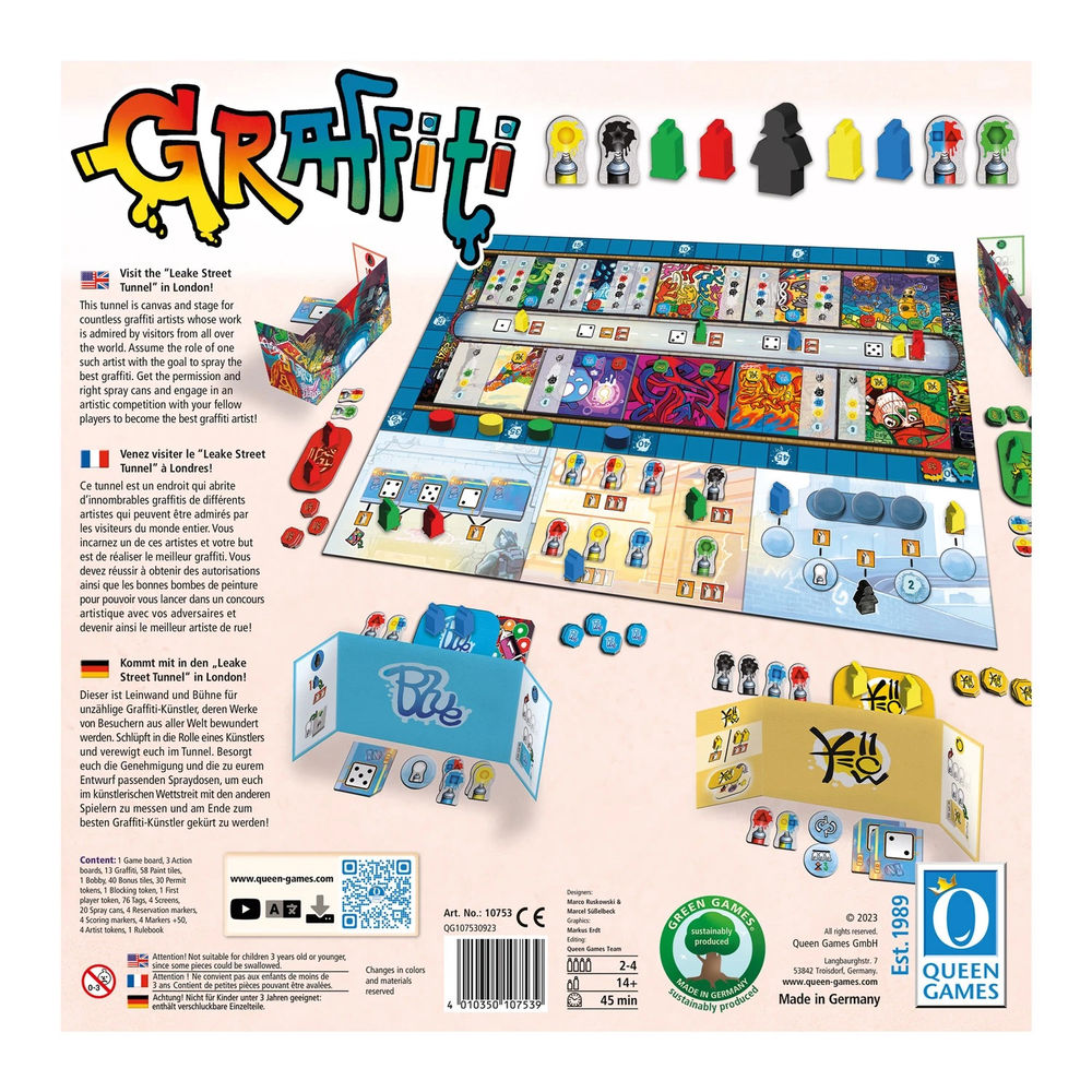 Kommt mit in den „Leake Street Tunnel in London! Dieser ist Leinwand und Bühne für unzählige Graffiti-Künstler, deren Werke von Besuchern aus aller Welt bewundert werden. Schlüpft in die Rolle eines Künstlers und verewigt euch im Tunnel. Besorgt euch die Genehmigung und die zu eurem Entwurf passenden Spraydosen, um euch im künstlerischen Wettstreit mit den anderen Spielern zu messen und am Ende zum besten Graffiti-Künstler gekürt zu werden!
