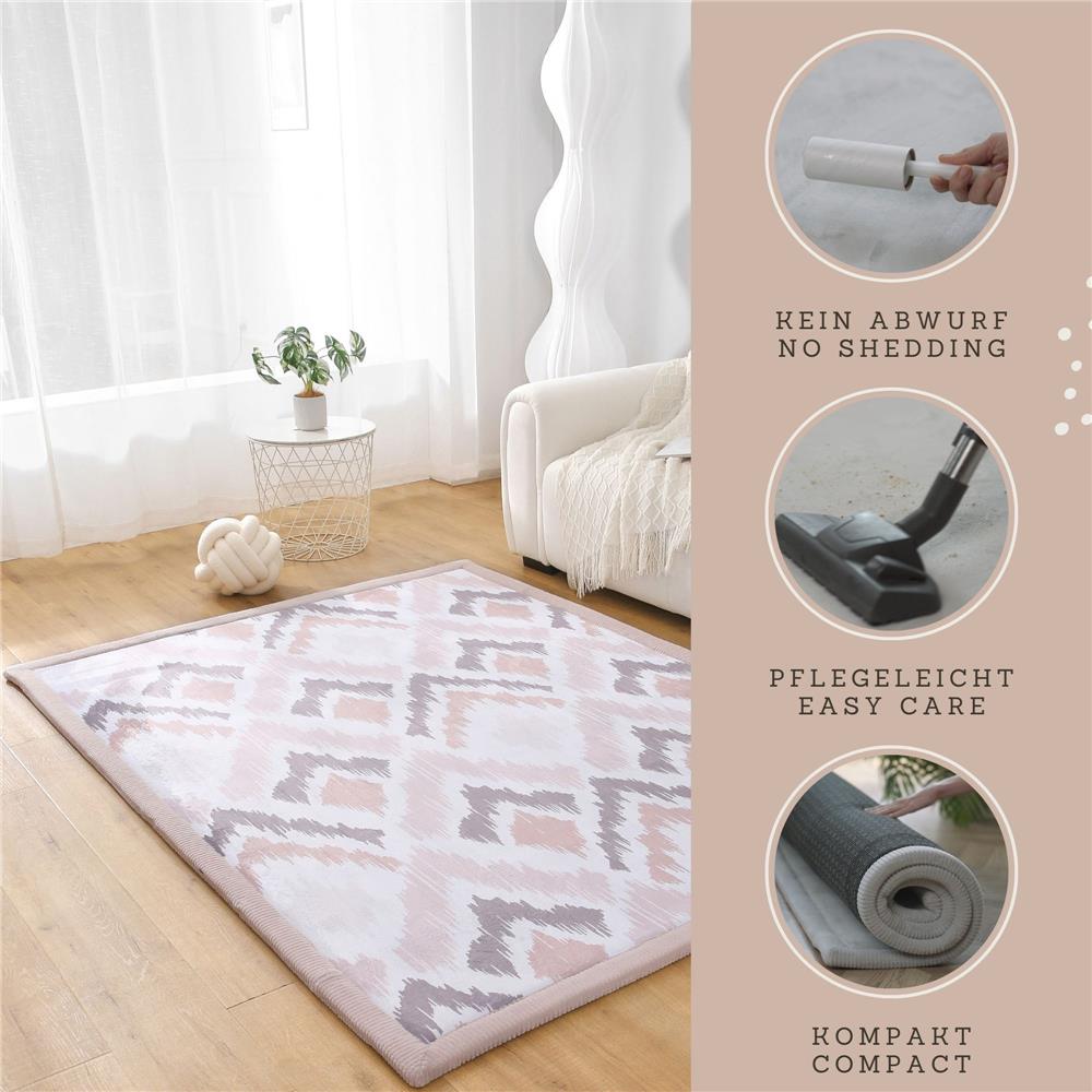 DER WOLKENWEICHE KINDERTEPPICH besteht aus drei Schichten: 1. Korallensamt für den weichsten Hautkontakt, 2. elastischer Memory-Schaum für bequemes Spielen und Krabbeln, 3. rutschfeste Rückseite zum Schutz vor Stössen beim Fallen. Durch die extra Grösse von 200 x 150 x 2 cm ist diese faltbare Spielmatte perfekt zum Krabbeln, Spielen, Yoga und für die Fitness zu Hause.
