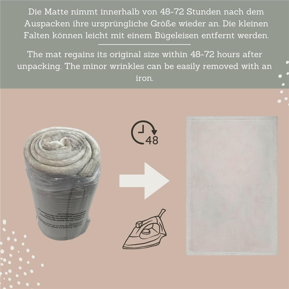 PREMIUM MEMORY-SCHAUM ist 2 cm dick und nimmt seine Grösse im Vergleich zu billigeren Alternativen schneller wieder an (innerhalb von 1-2 Tagen). Der Kinderteppich wird als Decke gefaltet geliefert und muss im Gegensatz zu vakuumverpackten Teppichen nicht gebügelt werden. Die komprimierte Verpackung spart Platz beim Transport und senkt die Kohlenstoffemissionen.