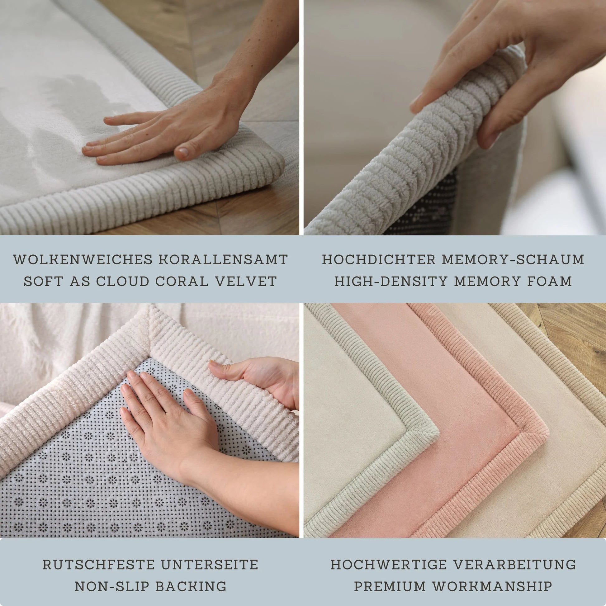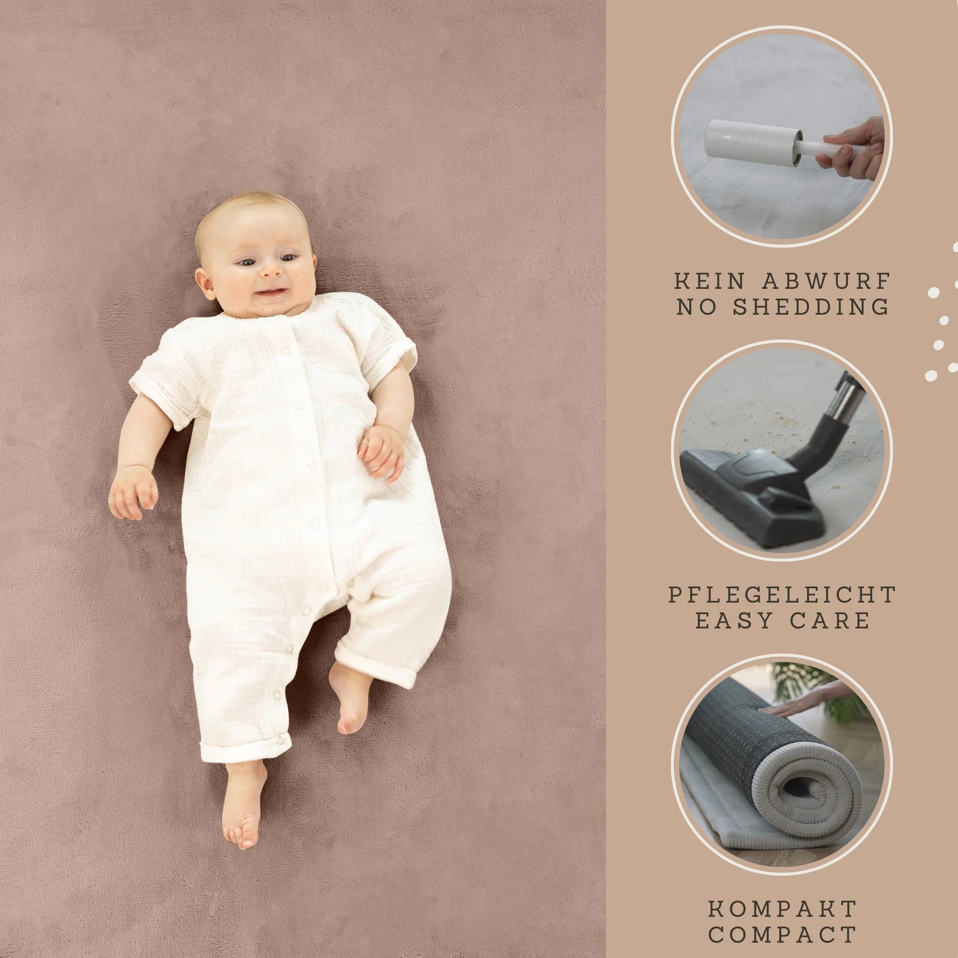 DER WOLKENWEICHE KINDERTEPPICH besteht aus drei Schichten: 1. Korallensamt für den weichsten Hautkontakt, 2. elastischer Memory-Schaum für bequemes Spielen und Krabbeln, 3. rutschfeste Rückseite zum Schutz vor Stössen beim Fallen. Durch die extra Grösse von 200 x 150 x 2 cm ist diese faltbare Spielmatte perfekt zum Krabbeln, Spielen, Yoga und für die Fitness zu Hause.