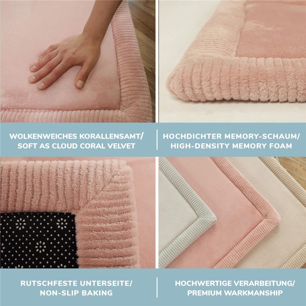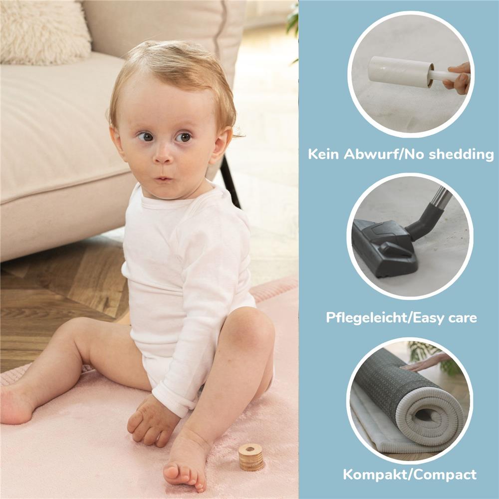 DER WOLKENWEICHE KINDERTEPPICH besteht aus drei Schichten: 1. Korallensamt für den weichsten Hautkontakt, 2. elastischer Memory-Schaum für bequemes Spielen und Krabbeln, 3. rutschfeste Rückseite zum Schutz vor Stössen beim Fallen. Durch die extra Grösse von 200 x 150 x 2 cm ist diese faltbare Spielmatte perfekt zum Krabbeln, Spielen, Yoga und für die Fitness zu Hause.