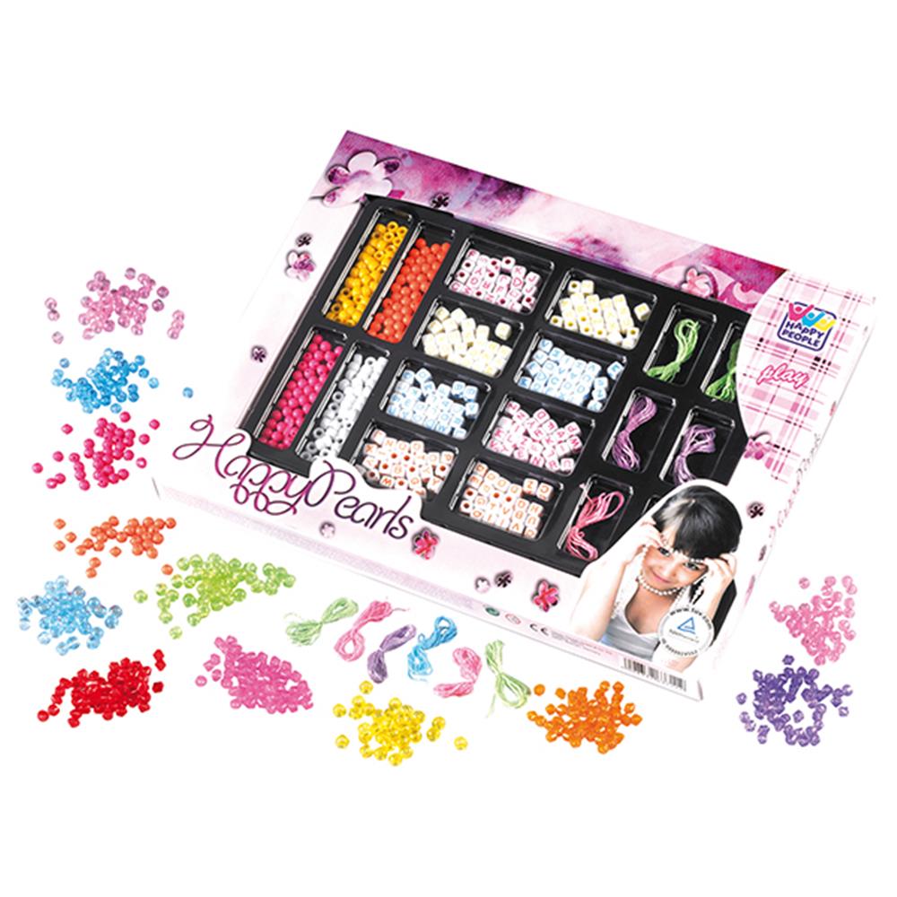 Perlenset mit bunten und transparenten Perlen, mit Bändern, verschiedene Formen, aus Kunststoff, 2-fach sortiert, ab 3 Jahre.