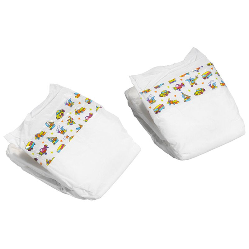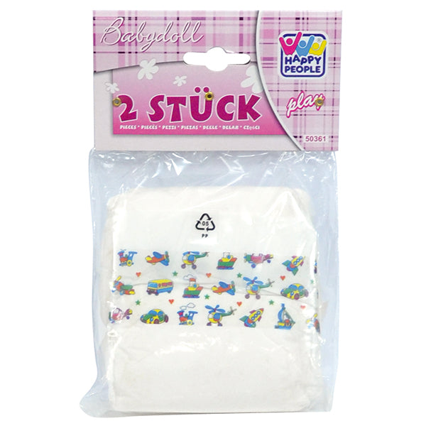 Puppenwindeln mit Motiven, 2 Stk. gefaltet mit Klebestreifen, ca. 13x11cm