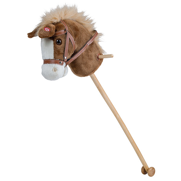 Steckenpferd mit Sound, Halfter und Handgriffen aus Holz, ca. 90cm, aus Plüsch und Holz.