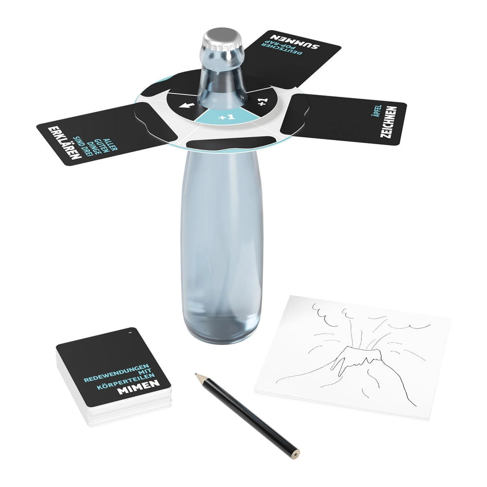 Die Herausforderung beim Ratespiel HINT besteht darin, wirklich alles zu zeichnen, zu erklären, zu mimen oder zu summen. Ihr solltet euch aber vor wilden Vermutungen hüten, denn es gibt immer einen verbotenen Begriff, den die Teamkollegen nicht erraten dürfen. Ob beim Spieleabend, auf der nächsten Party oder im Park: Dank der enthaltenen Materialien braucht ihr nichts weiter als eine handelsübliche Flasche, an der ihr die Karten befestigen könnt, um direkt loszuspielen!