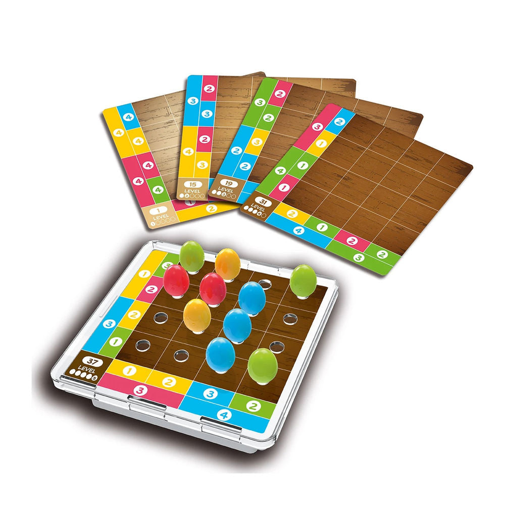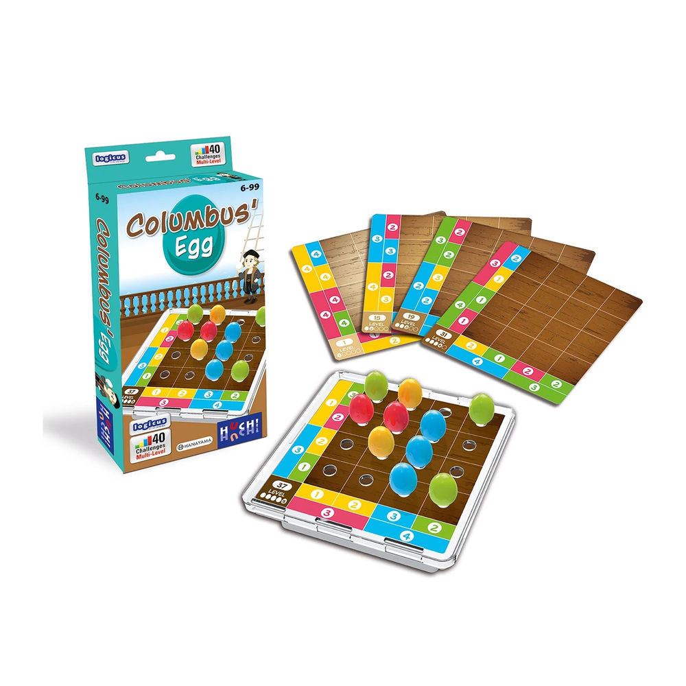 Beim Ei des Kolumbus ist logisches Denken gefragt! Die Eier müssen gemäß den Legeregeln auf die richtigen Felder gesteckt werden. Die Angaben vor den Reihen und unter den Spalten geben Hinweise dazu, wie viele Eier in welcher Farbe in welchem Bereich des Spielplans zu platzieren sind. Doch die Aufgaben werden immer schwieriger! Insgesamt bietet das Logikspiel Das Ei des Kolumbus 40 verschiedene Aufgaben in 5 Schwierigkeitsstufen. Schaffst Du es, alle Aufgaben zu lösen? Fang am besten mit einem einfachen Rätsel an und arbeite dich weiter zu den schwierigeren vor. Kommst du gar nicht weiter, kannst du im Lösungsheft nachschauen.
