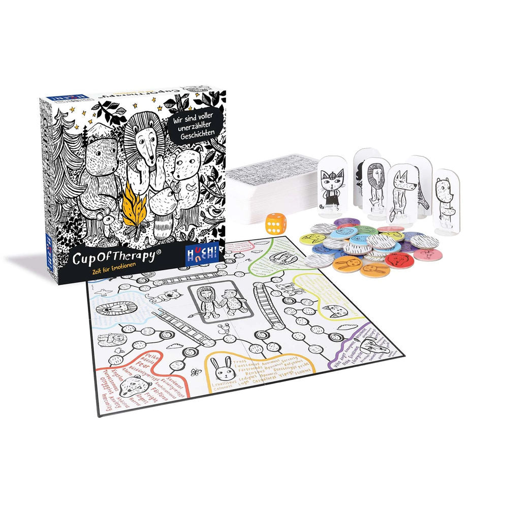 Gefühle begleiten uns auf Schritt und Tritt in unserem Leben. Sie helfen uns bei der Lösung unserer Probleme, wenn wir es nur zulassen. In diesem Spiel geht es darum, seine Gefühle und Erfahrungen auszudrücken und sich und andere besser zu verstehen. Die gefühlsbetonten und zum Nachdenken anregenden Illustrationen helfen, die eigenen Gedanken besser zu verstehen und auch über schwierige Dinge zu sprechen. Das Cup-of-Therapy-Konzept ist von den Psychotherapie-Profis Antti Ervasti und Elina Rehmonen entwickelt worden und mit dem international anerkannten Illustrator und Grafikdesigner Matti Pikkujämsä umgesetzt worden. Die Illustrationen vermitteln Ermutigung, Trost und Humor. Mit den Cup-of-Therapy-Produkten sollen schwierige und sensible Themen und Situationen zur Sprache gebracht werden.