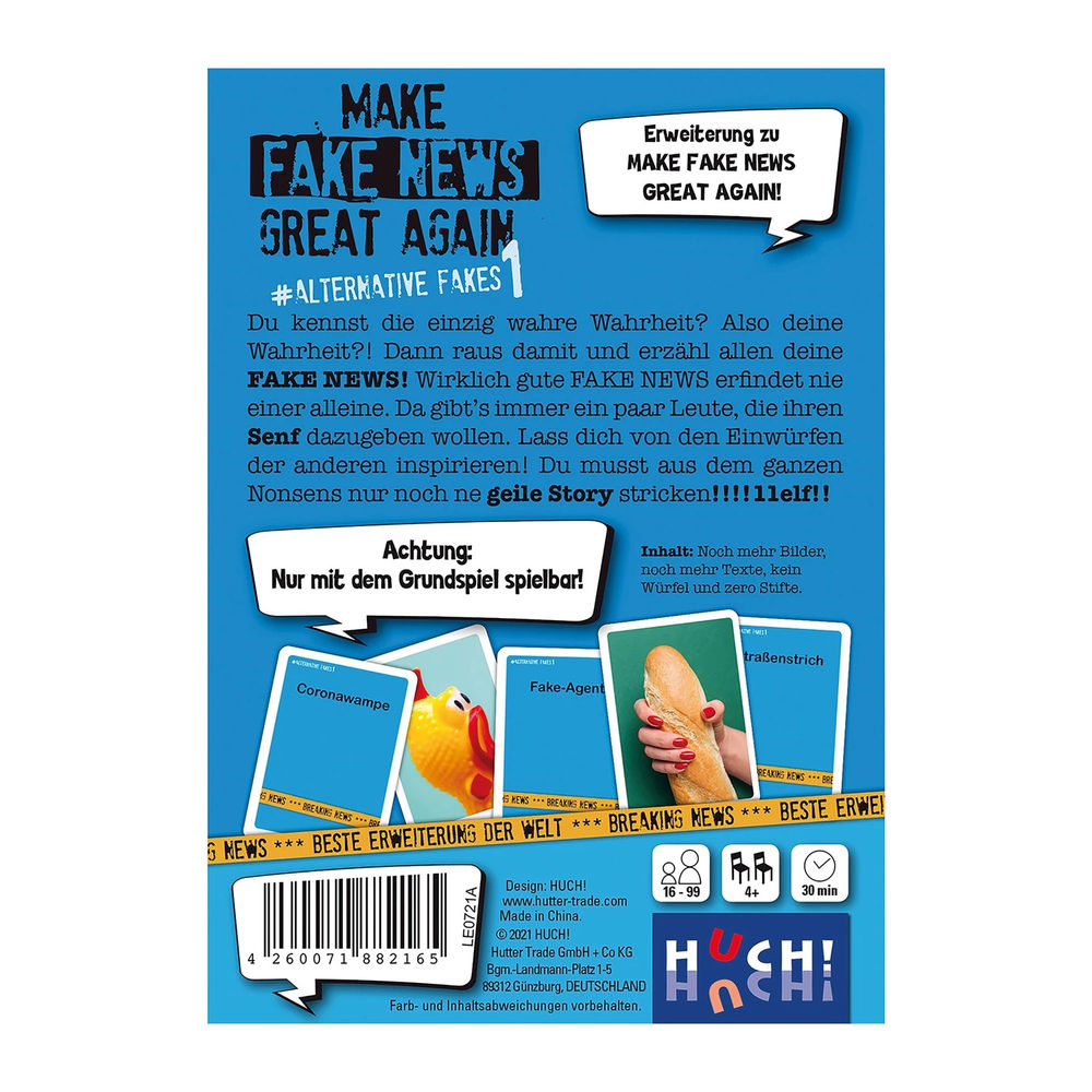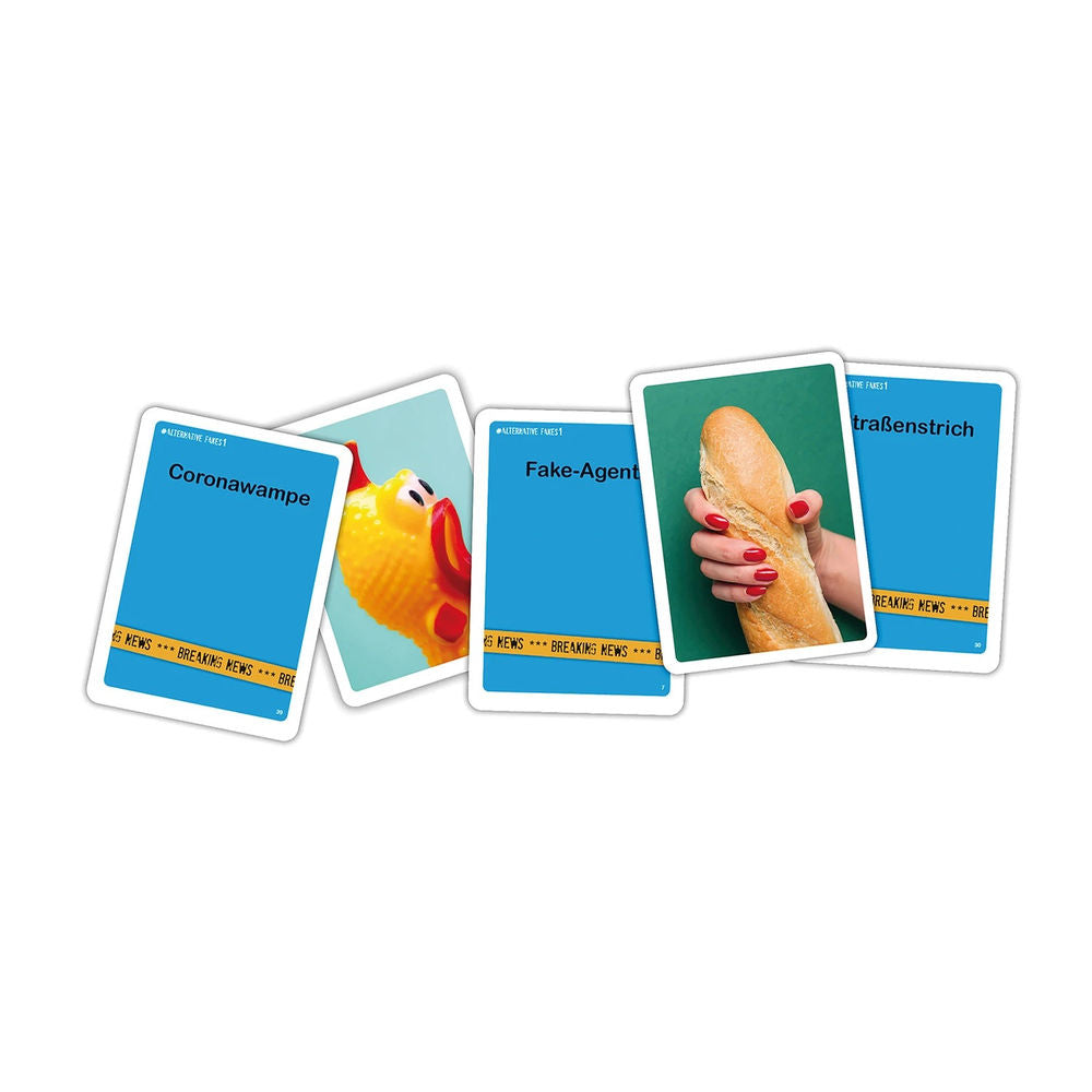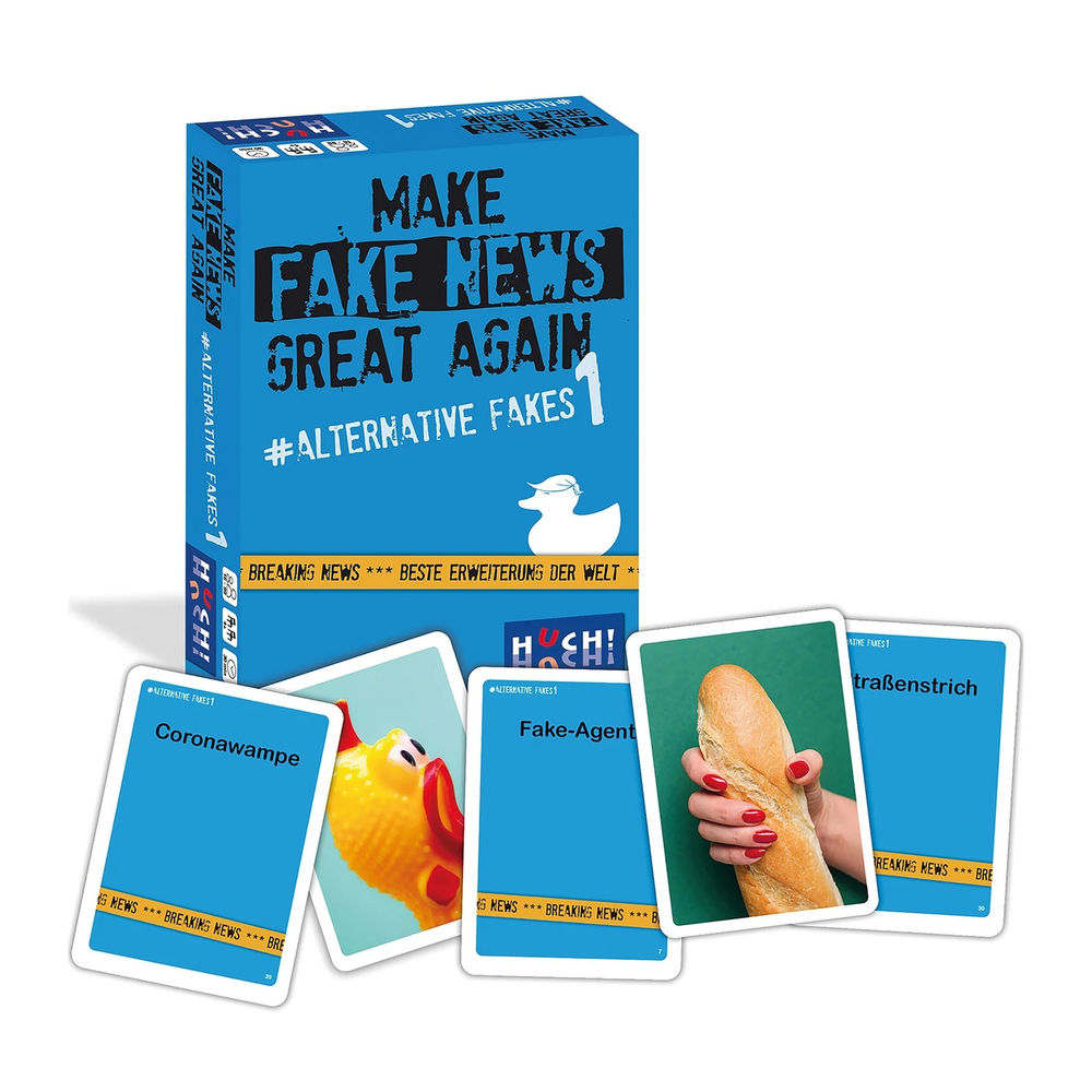 Eine Zeitungsente jagt die nächste und nach ersten Fakes kommen jetzt Alternative Fakes. Noch mehr Fakes Und noch mehr Fun. Die Erweiterung zum Partyspiel versorgt euch mit noch mehr Input für Halbwahrheiten. Warnung: FAKE NEWS kennt keine Gewinner. Bei FAKE NEWS und bei ALTERNATIVE FAKES gibt es immer nur Verlierer!