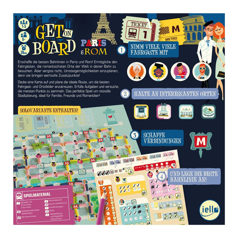 Erschaffe die besten Bahnlinien in Paris und Rom! Ermögliche den Fahrgästen, die romantischsten Orte der Welt in deiner Bahn zu besuchen. Aber vergiss nicht, Umsteigemöglichkeiten einzuplanen, denn sie bringen wertvolle Zusatzpunkte! Decke eine Karte auf und plane die ideale Route, um die besten Fahrgast- und Ortsfelder anzukreuzen. Erfülle Aufgaben und versuche, die meisten Punkte zu sammeln. Das perfekte Spiel um reizvolle Stadtplanung, ideal für Familie, Freunde und Romantiker!