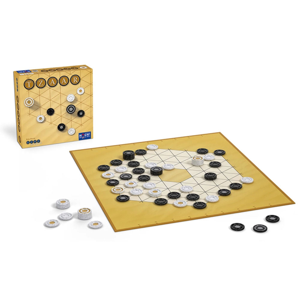 TZAAR ist das zweite Spiel des Project GIPF. Jeder Spieler besitzt 3 Arten von Spielsteinen: Tzaars, Tzarras und Totts. Keiner der Steine kann ohne die anderen bestehen und nur mit allen Dreien kannst du das Spiel gewinnen. Das Dillema: sollst du deine eigene Stellung stärken oder lieber den Gegner schwächen?