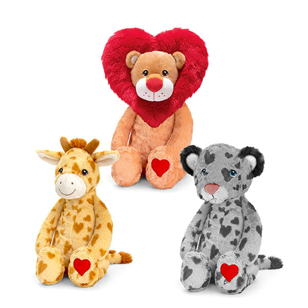 Kuschelige Wildtiere mit Herz, 3 Stück ass. Das Ideale Geschenk für Deinen Valentin, Grösse 28cm. Aus recycletem Plüsch.