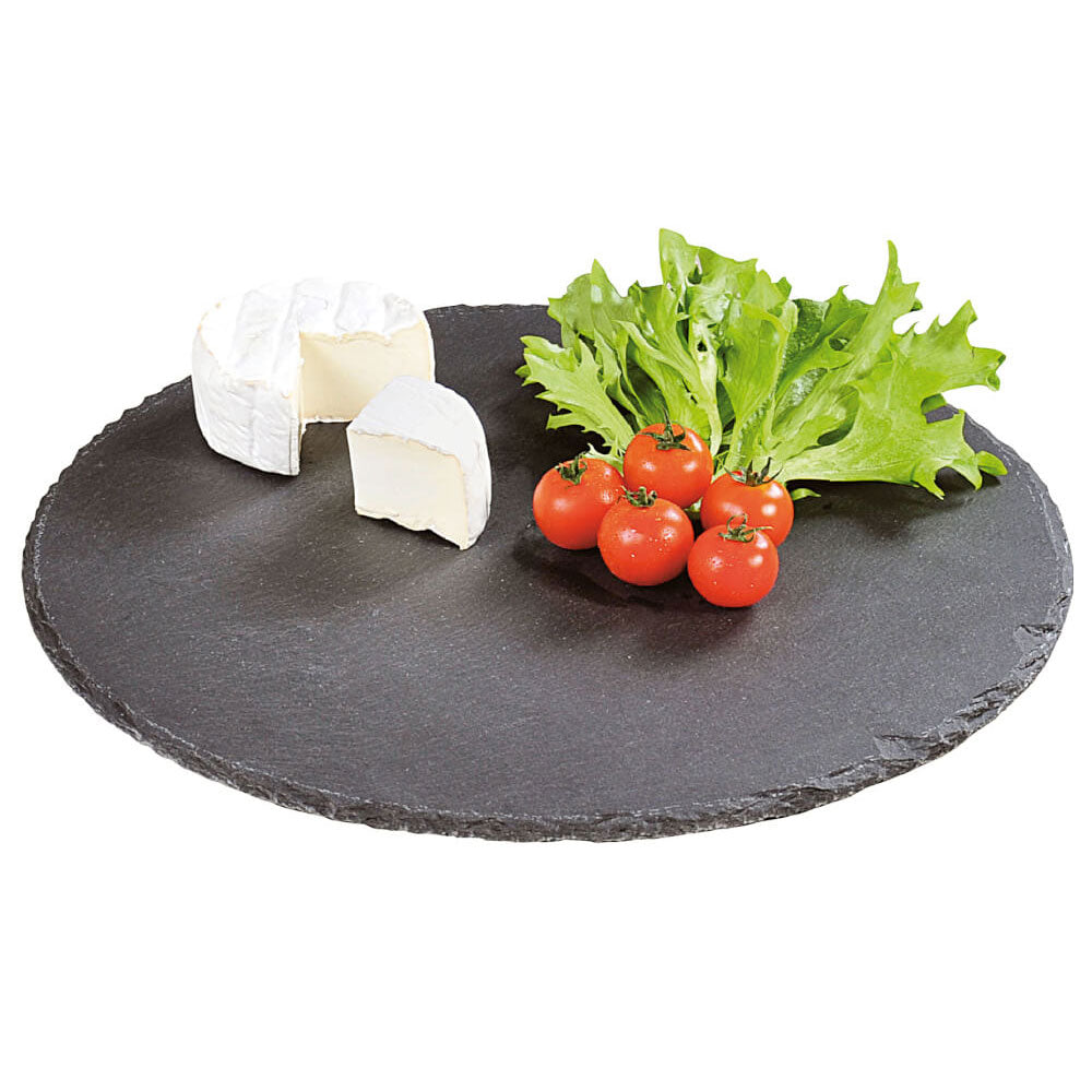 Die Kesper Buffetplatte aus Schiefer ist eine exquisite Wahl für die Präsentation von Esswaren auf Ihrem nächsten Buffet. Diese runde Schieferplatte besticht durch ihre natürliche Schönheit und geölte Oberfläche.