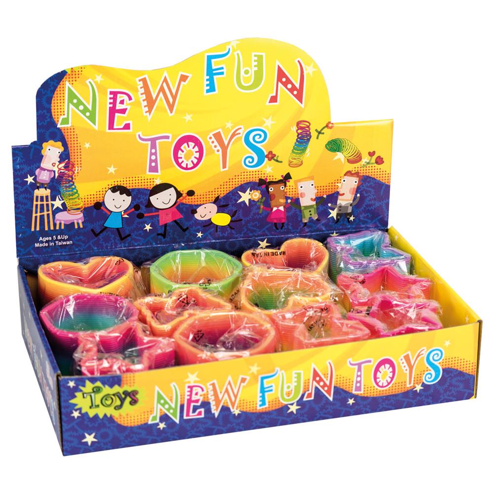 Spiralfeder Regenbogen 8 cm, 4 Motive, Stern, Herz, Schmetterling und Hexagon