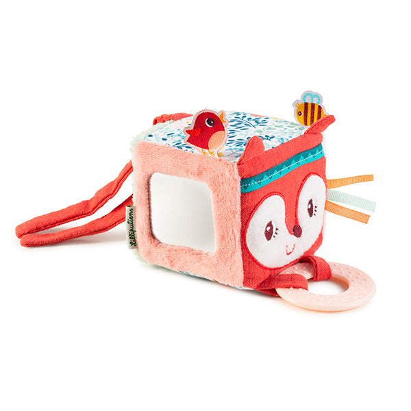 Auf diesem Würfel mit verschiedenen Motiven und Texturen gibt es auf jeder Seite etwas zu erleben. Eine Quelle an Inspiration und Stimulation für kleine Entdecker. Durch das Band einfach zu befestigen.