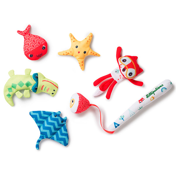 Wetten, dass unser witziges Angelspiel bei Ihrem kleinen Liebling gut ankommt? Beobachten Sie, wie das Kind, ganz stolz auf seine Fänge, die Angelrute mit dem eingenähten Magnet immer geschickter bewegt!