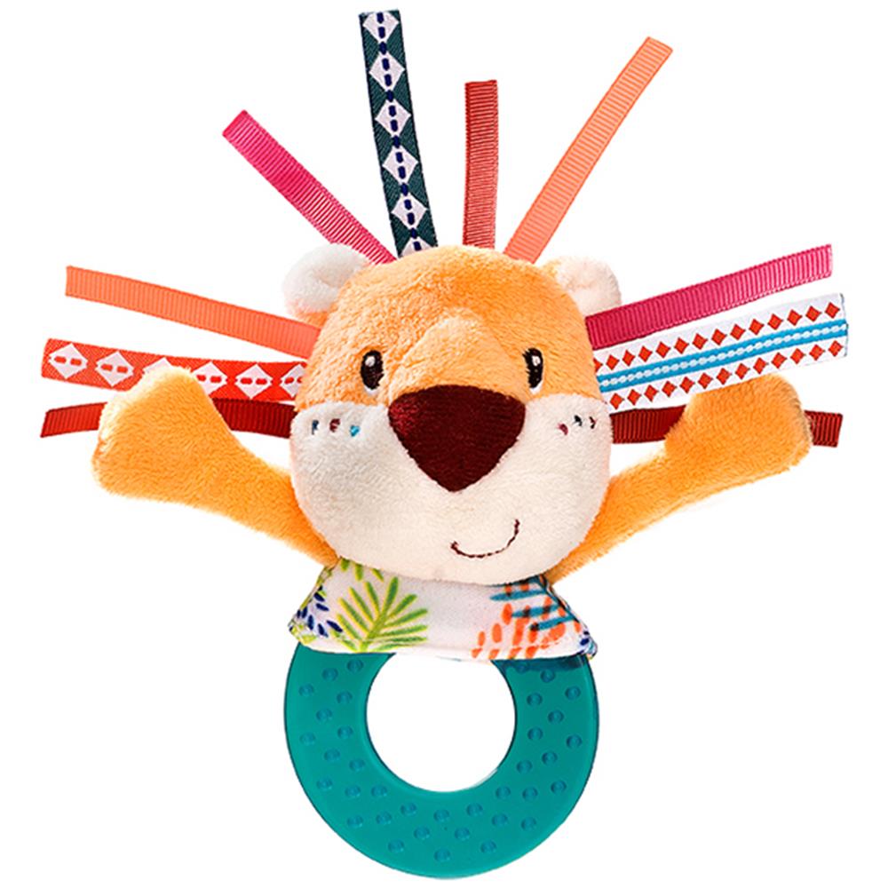 Diese weiche, besänftigende Beissrassel mit Jack, dem Löwen, sorgt für zusätzliche Sinnesreize durch beruhigende Glöckchen- und Raschelgeräusche in der Rassel.