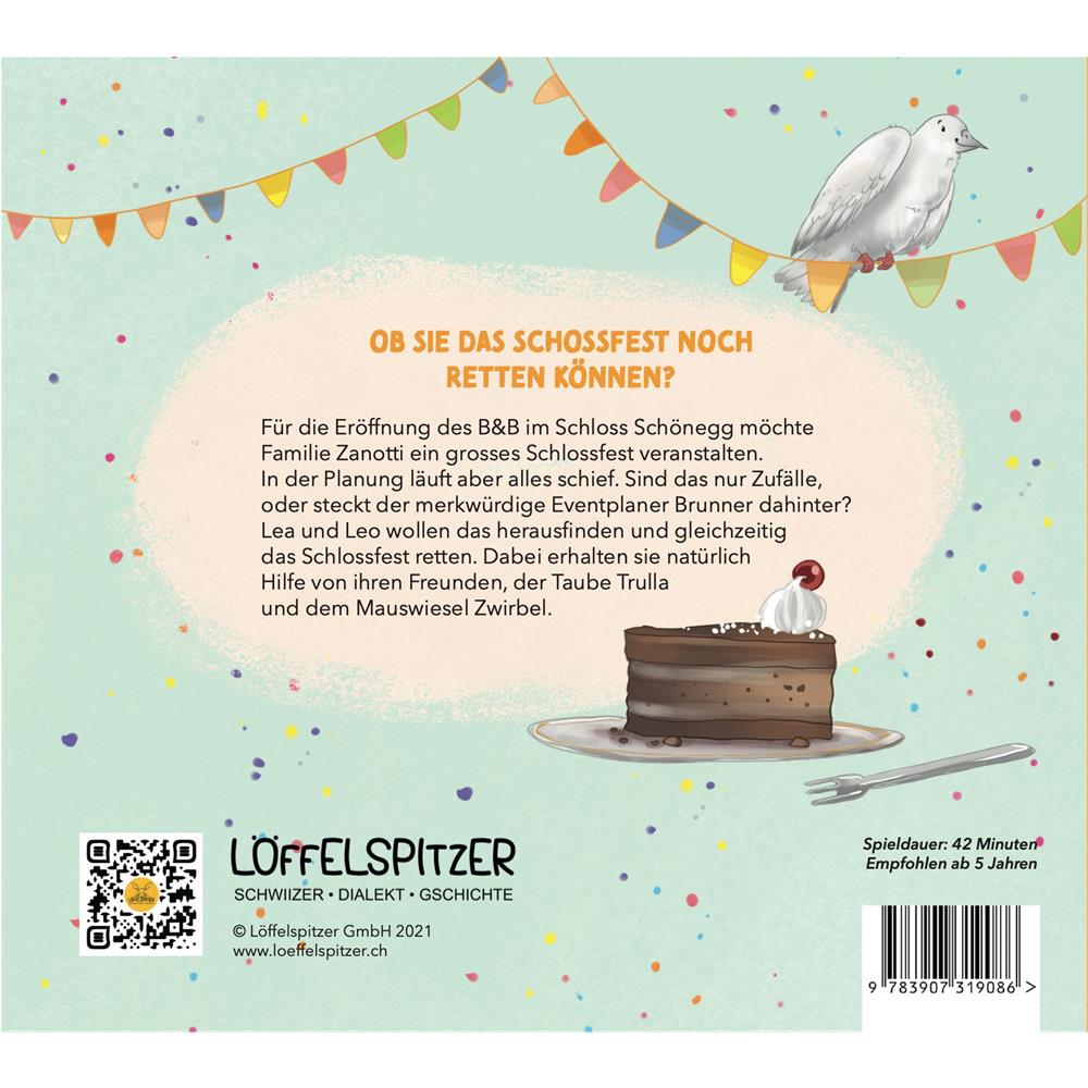 Für die Eröffnung des B&B im Schloss Schönegg möchte Familie Zanotti ein grosses Schlossfest veranstalten. In der Planung läuft aber alles schief. Sind das nur Zufälle, oder steckt der merkwürdige Eventplaner Brunner dahinter? Lea und leo wollen das herausfinden und gleichzeitig das Schlossfest retten. Dabei erhalten sie natürlich Hilfe von ihren Freunden, der Taube Trulla und dem Mauswiesel Zwirbel.
