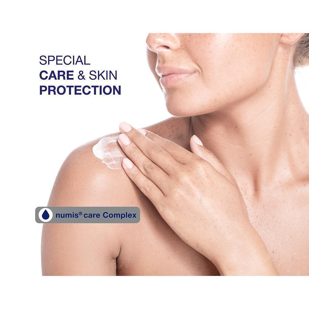 Sanfte Reinigung für sehr empfindliche Haut. Die sanfte, pH-hautneutrale Formel mit dem numis® care Wirkstoffkomplex und Panthenol reinigt die Haut besonders schonend. Sie stabilisiert den Säureschutzmantel der Haut, stärkt dessen natürliche Widerstandskraft. Für zart gepflegte Haut.