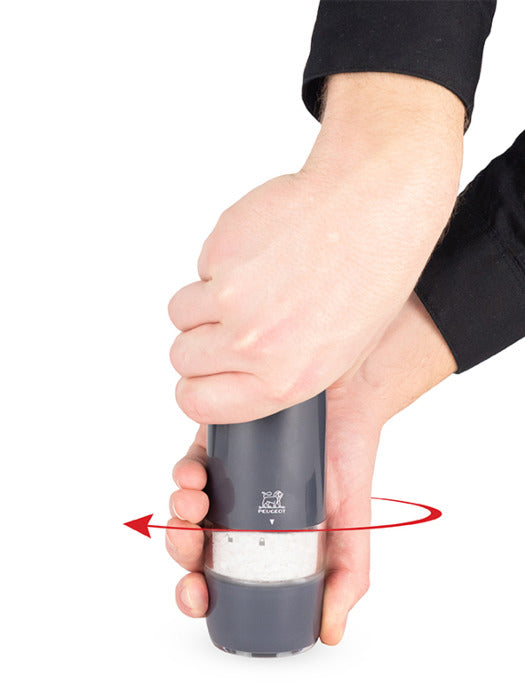 Diese quarzgraue elektrische Salzmühle in ergonomischem, spielerischen Design eignet sich ideal für alle Köche. Die elektrische Peugeot Salzmühle Alaska erlaubt mühelos das gleichzeitige Mahlen und Kochen!