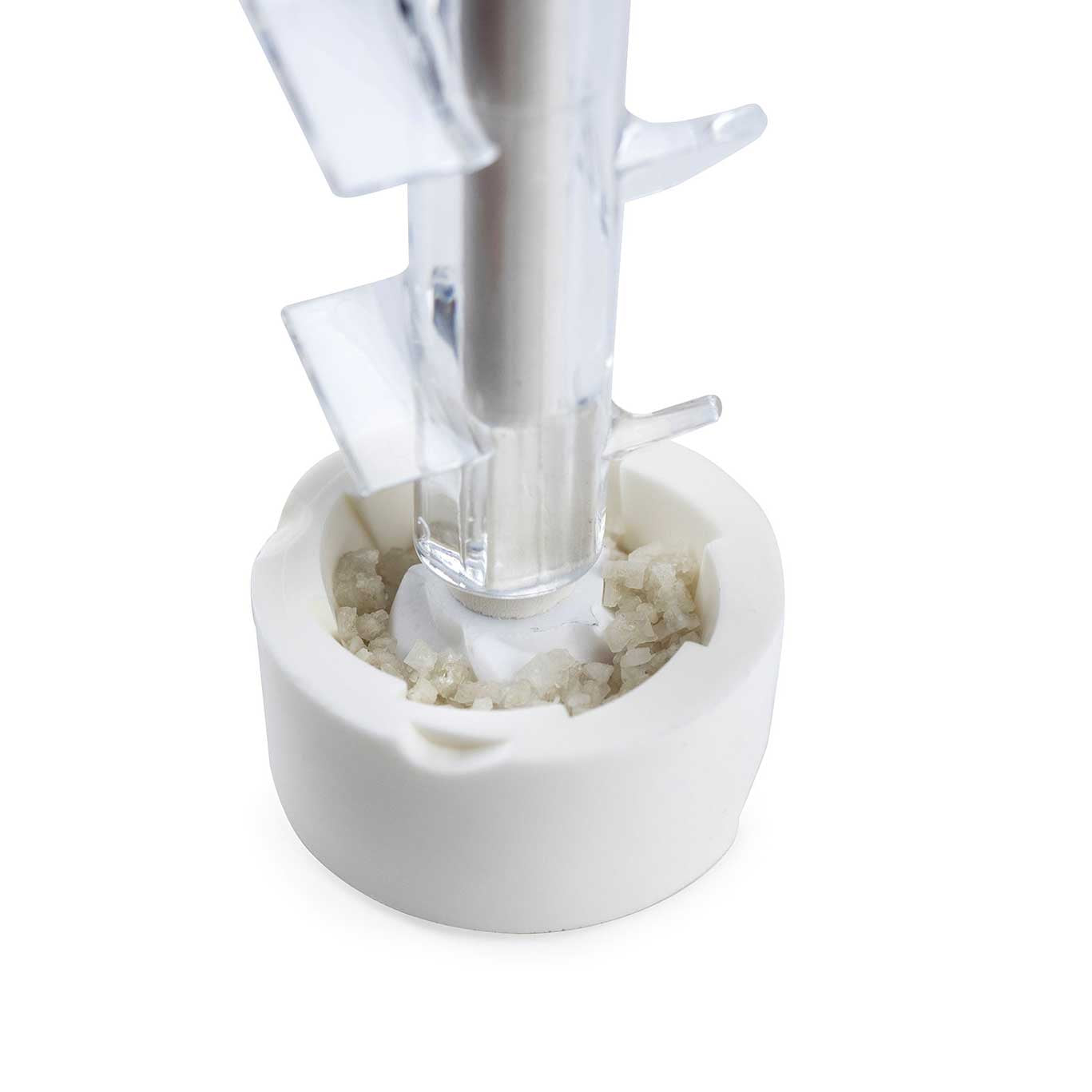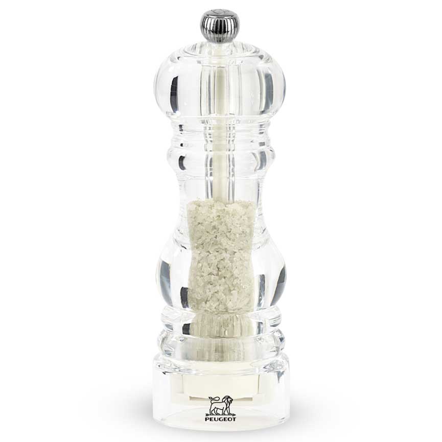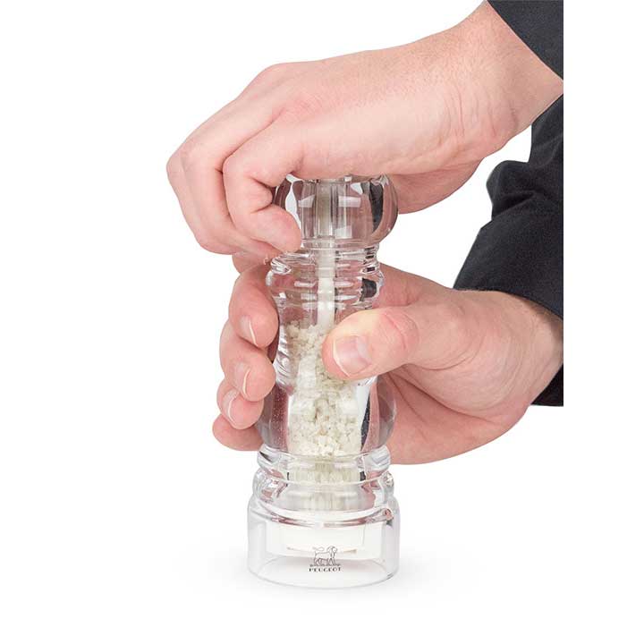 Für alle Liebhaber von grauem Küchenmeersalz (aus Guérande oder anderswo) ist die 18 cm grosse Nancy Mühle speziell für Feuchtsalz ein leistungsstarkes Schmuckstück. Zwei Patente liegen dem exklusiven Mahlwerk zugrunde und garantieren eine hocheffiziente Mahlleistung, auch bei sehr feuchtem Salz. Der Einstellknopf oben auf der Mühle reguliert präzise die Mahlfeinheit. Mit ihrem zeitlosen Design und der modischen Transparenz ist diese Mühle eine Werbung für das Meersalz.