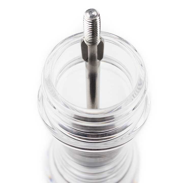 Die NANCY Pfeffermühle gehört zu unserer klassischen, zeitlosen Linie. Es handelt sich um eine manuelle Pfeffermühle, mit einem Drehknopf oben auf der Mühle umd den Mahlgrad zu verstellen. Der transparente Korpus ermöglicht das schnelle Erkennen des Inhaltes und der Füllmenge.