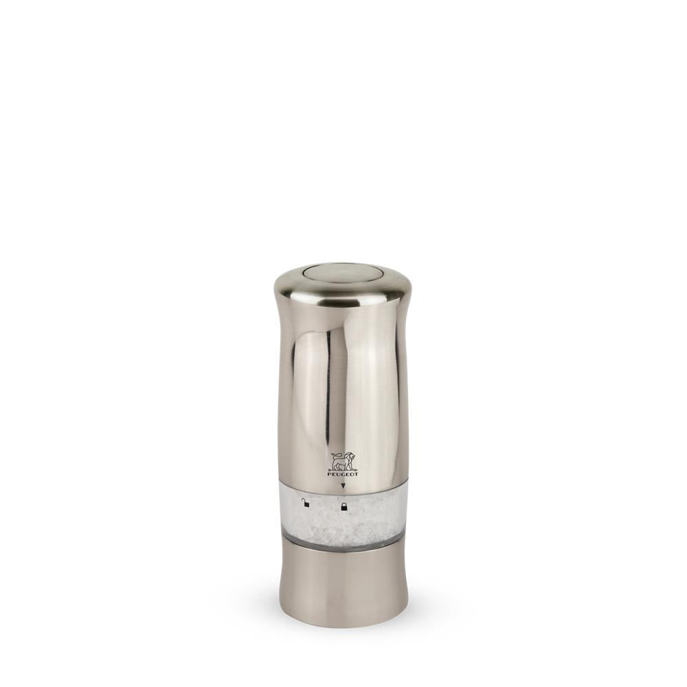 Sehr modern mit ihrer Verkleidung wie aus gebürstetem Metall erweist sich Zeli als besonders ergonomisch: geringe Grösse (14 cm hoch), Knopf oben an der Mühle für eine natürliche Handbewegung. Ausserdem hat Zéli DIE beliebteste Funktion, die unzertrennlich mit Peugeot verbunden ist: die kleine Lampe, die bei Benutzung aufleuchtet. Von grosser Wirkung bei Tisch! Zeli ist für Salz und Pfeffer erhältlich, für Pfeffer mit der Möglichkeit, den Mahlgrad mit einem kleinen Rädchen am Mahlwerk einzustellen.