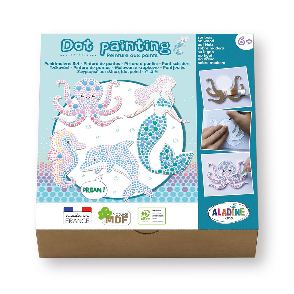 Das Punktmalerei-Set Meerjungfrau von Aladine fördert die Kreativität, wie auch die Genauigkeit und Konzentration der Kinder. Um die vorgezeichneten Punkte mit dem dazugehörigen Malwerkzeug optimal zu treffen, sind außerdem Geschick und Ausdauer gefragt. Die tierischen Formen und die große Farbauswahl lassen jedes Kinderherz ab 6 Jahren höherschlagen. Inhalt: 1 Pinsel, 1 Stift, 2 Malwerkzeuge, 8 Farben auf Wasserbasis, 1 Schablone, 4 Holzformen