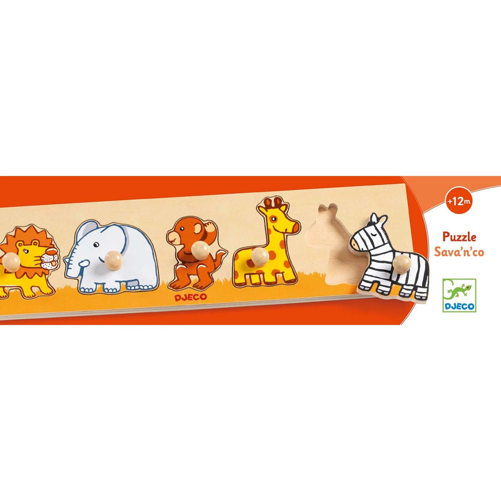 Liebevoll gestaltet Holzpuzzle von Djeco. Die Holzfiguren sind im 3D Format und können somit auch unabhängig vom Puzzle zum Spielen verwendet werden.