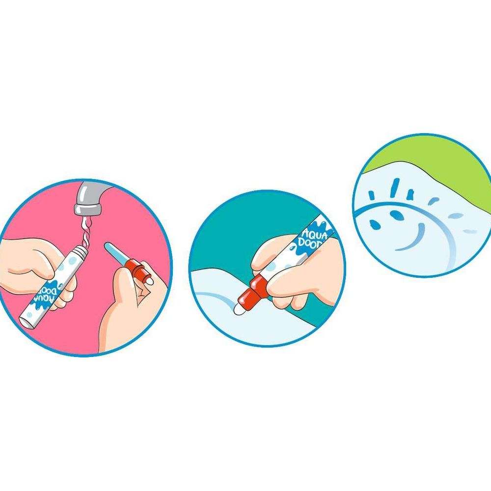 Aquadoodle Animals mit seiner lustigen Tierwelt inspiriert Kleinkinder ab 18 Monaten zum ersten Malen. Einfach Wasser in den Stift, schon können sie nach Herzenslust auf der magischen Matte losmalen. Das Geheimnis: In Kontakt mit Wasser färbt sich die Malmatte blau. Trocknet das Wasser, verschwinden die Striche und das Malset ist bereit für ein neues Werk. Aquadoodle von Ravensburger garantiert höchste Qualität in Funktion und Verarbeitung und steht für einen sicheren und langlebigen Malspass.