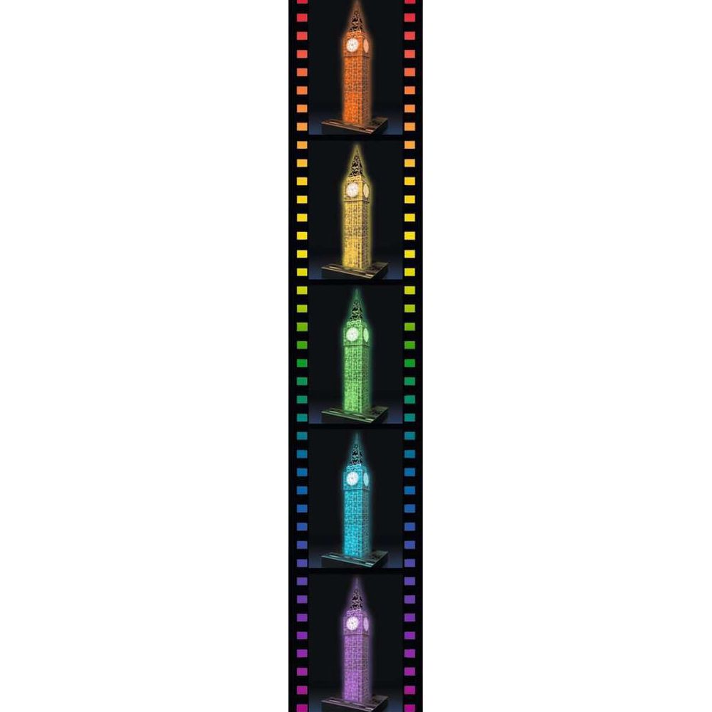 Big Ben ist eines der prominentesten Wahrzeichen Großbritanniens. Besonders eindrucksvoll zeigt sich der Glockenturm nach Einbruch der Dunkelheit. Mit dem Ravensburger 3D Puzzle Big Ben bei Nacht können sich nun alle einen Hauch der außergewöhnlichen nächtlichen Atmosphäre Londons nach Hause holen. Das detailliert ausgearbeitete 3D-Puzzle im wunderschönen Nacht-Design ist aufgrund einzigartiger Digitaldrucktechnologie mit 600 dpi Druckqualität sehr realitätsgetreu gestaltet. Die innovativen Kunststoff-Puzzleteile passen dabei durch EasyClick Technology perfekt ineinander und formen ein stabiles Bauwerk, ganz ohne Kleben. Gepuzzelt werden kann nach Motiv oder nach Zahlen. Und wie sein großes Vorbild wird der 3D-Puzzle-Big-Ben im Dunkeln zu einem echten Highlight, wenn er dank der beiliegenden LEDs von innen erstrahlt. Dabei besteht die Wahl zwischen zwei Farbvarianten: also mit weißen LEDs oder in der Variante mit wechselnden Farbtönen.