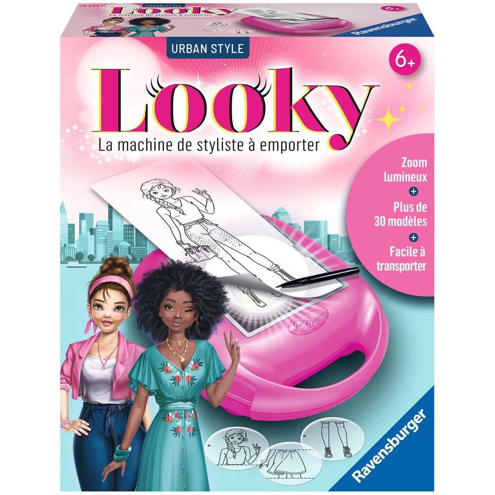 Looky, la machine de styliste à emporter partout avec soi ! Grâce à la valisette Looky, crée des tenues de mode selon 2 poses mannequin différentes. Son plus ? Le zoom lumineux à 4 niveaux qui permet de grossir les motifs des films modèles et de les combiner entre eux. Plus de 30 combinaisons sont possibles pour créer des looks Urban Style ! Pour célébrer la diversité et l'inclusivité, les modèles à dessiner ont des coiffures et des physiques différents pour que toutes les petites filles puissent trouver un modèle auquel elle souhaite s’identifier. Son contenu est renouvelé en proposant non plus des mannequins modèles en taille 34-36 mais 1 modèle taille 38 et 1 modèle taille 42, pour la première fois dans un jeu de dessin de mode ! Dès 6 ans. Fonctionne avec 4 piles LR6 non fournies. Ce produit est composé de matériaux issus de forêts bien gérées certifiées FSC, de matériaux recyclés et de matériaux issus d’autres sources contrôlées (FSC-C111262).