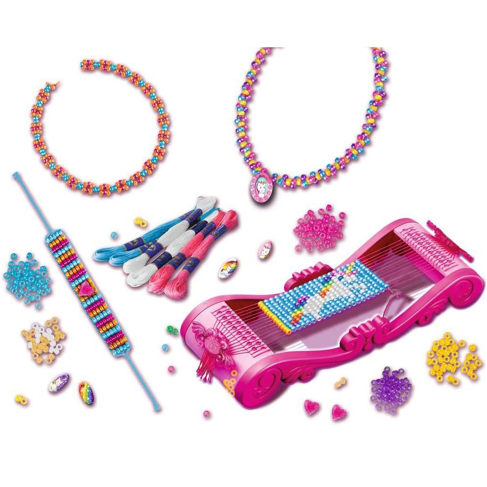 Zauberhafte Schmuckstücke aus schillernden Perlen! Zauberhafte Einhörner und andere magische Motive in der eigenen Schmuckkollektion zum Leben erwecken, ist wohl ein Traum der meisten jungen Mädchen! Mit diesem schönen Webrahmen entstehen glitzernde Armbänder und kreative Ketten in echter Handarbeit. Ein wundervolles Bastelset für echte Einhorn-Fans ab 5 Jahren mit viel Fantasie!